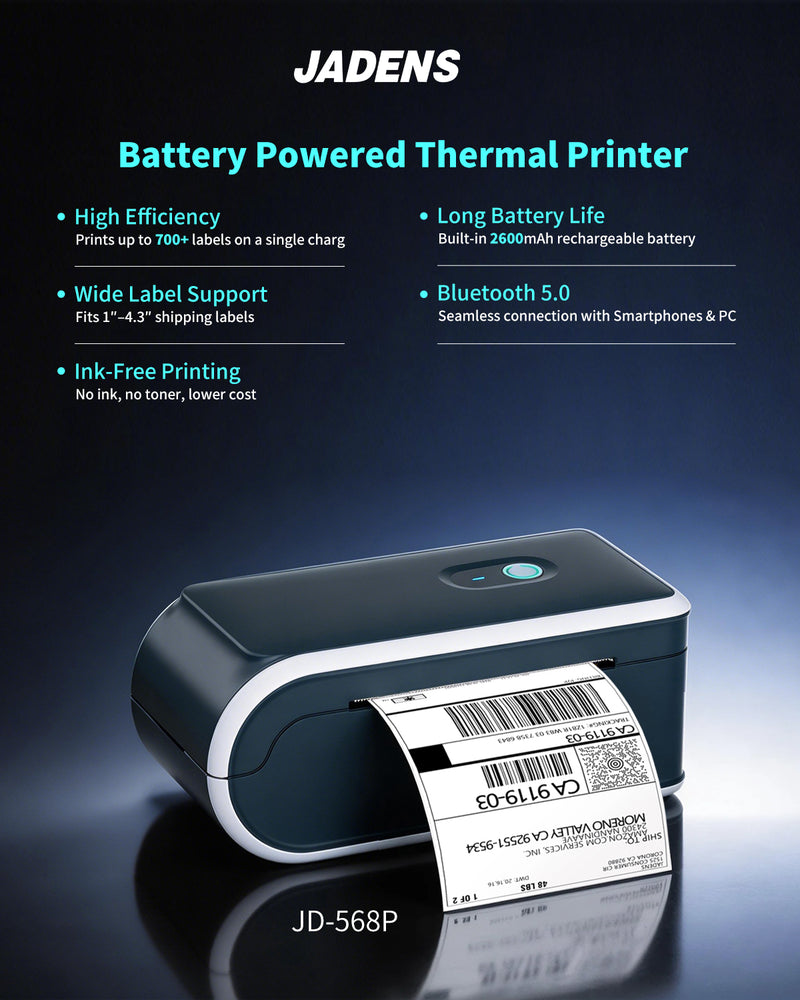 View full detailsGuarantee 30-day return guarantee, 1-year warranty Description Bluetooth APP Control: Jadens Bluetooth thermal shipping printer prints labels...