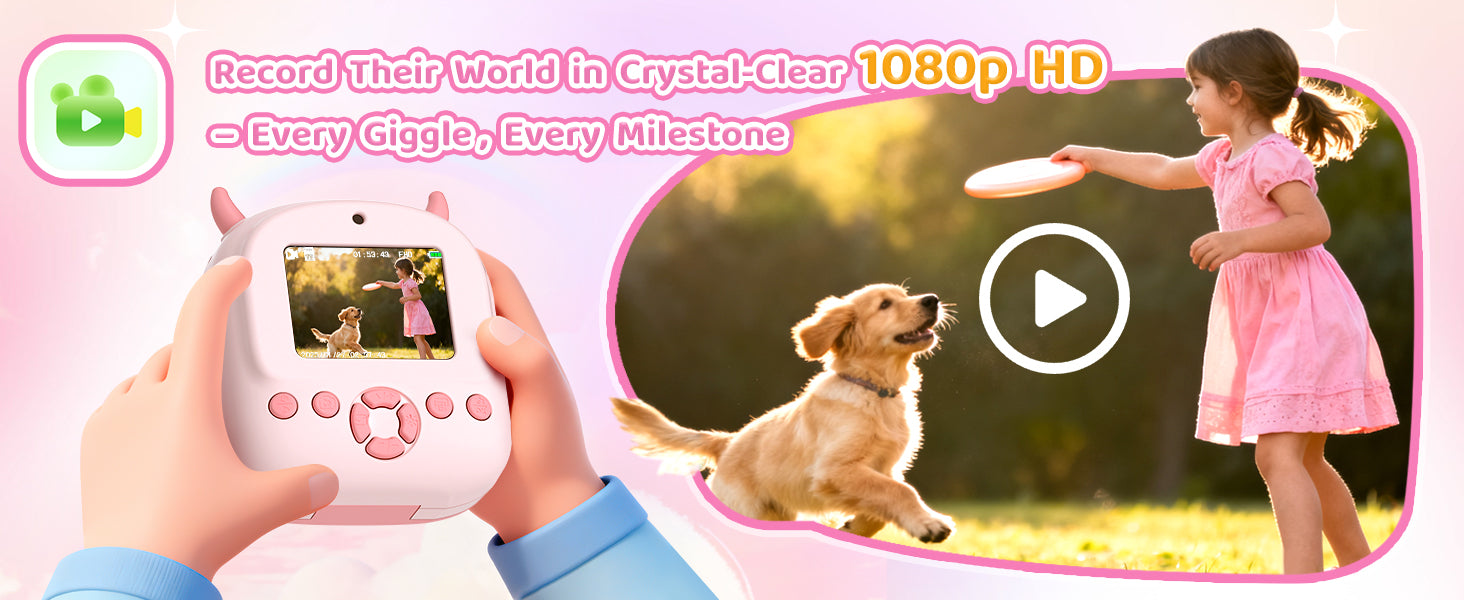 Kids Instant Camera Printer 1080P Selfie & Video Gift for Ages 3–12 Pink
