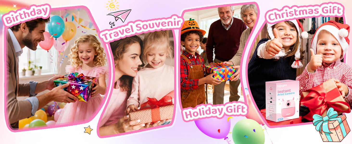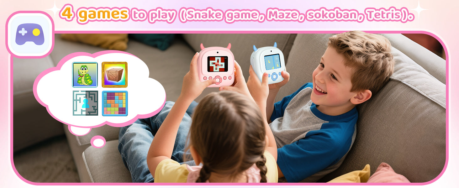 Made from non-toxic, shockproof materials, this toddler camera is safe, sturdy, and easy to handle. The ink-free thermal printing is odorless and skin-safe — no ink, toner, or mess. 100% kid-friendly for worry-free play.