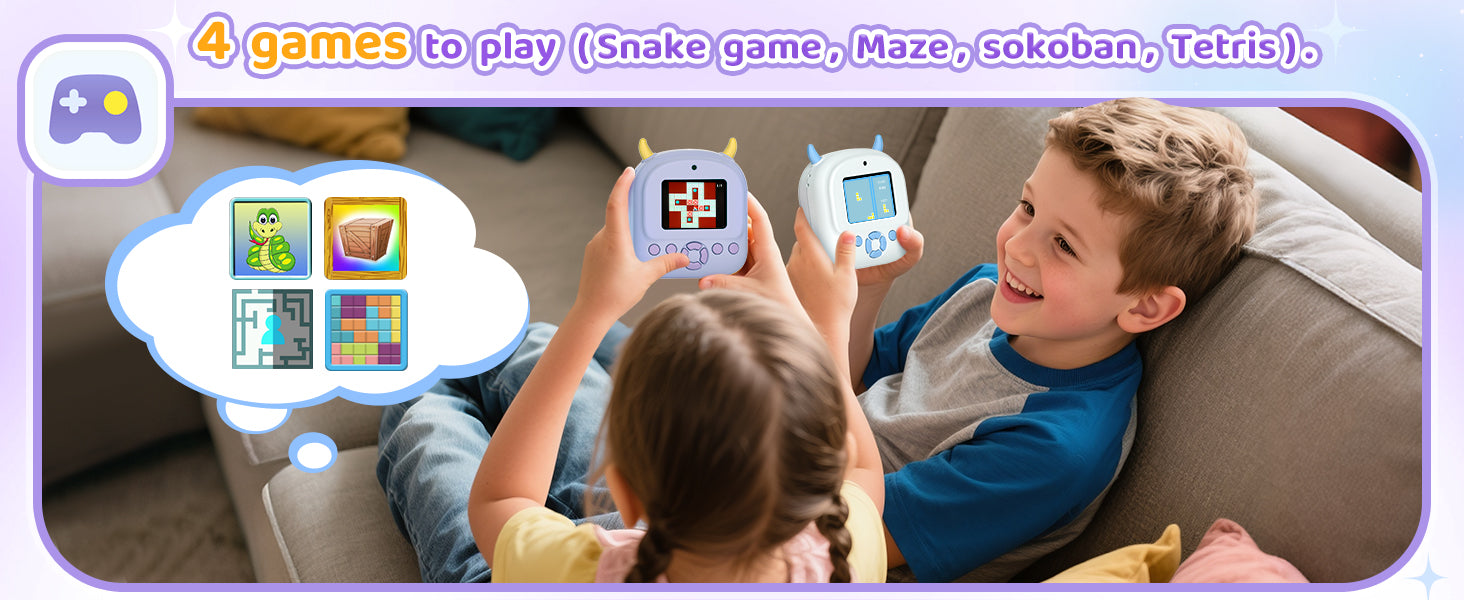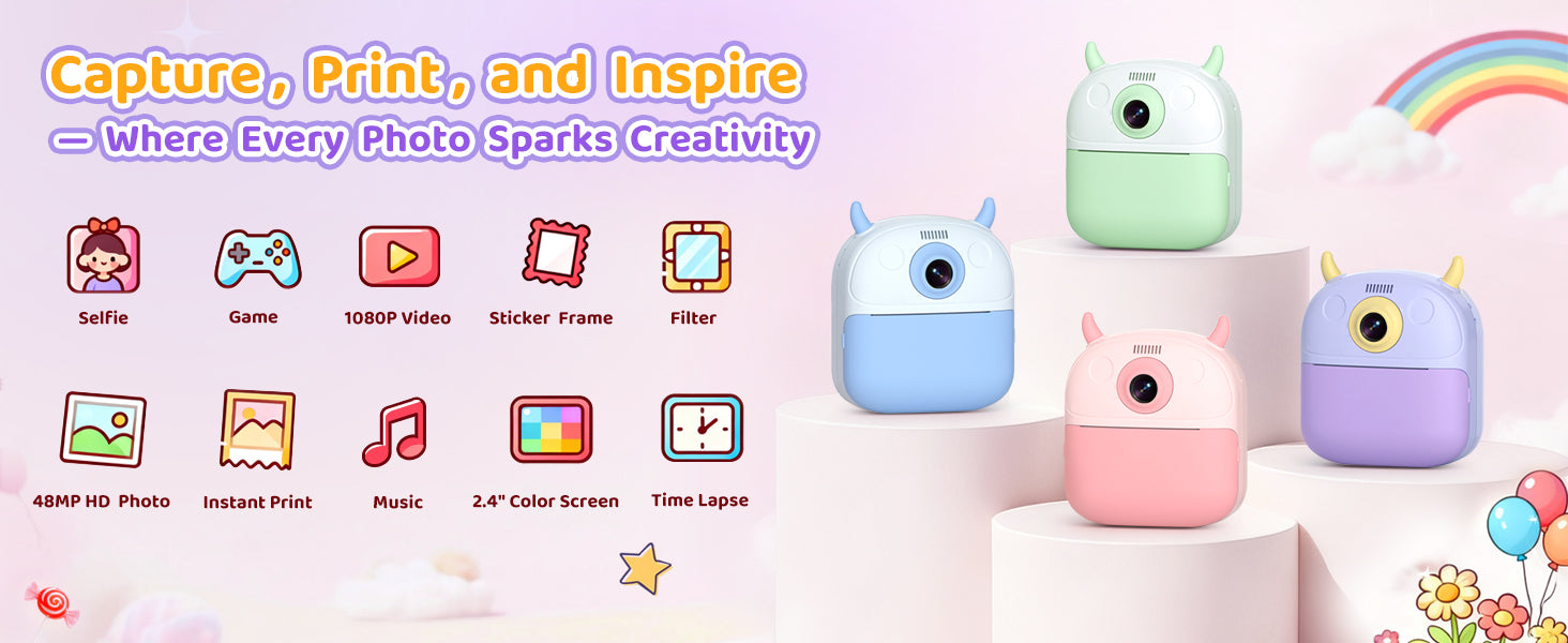 - Child-Safe Design for Peace of Mind: Your child's safety is our priority. The camera is made from high-quality, soft-touch plastic with a shockproof shell that withstands drops. Our advanced thermal printing technology requires no ink, toner, or carbon powder, producing odor-free and non-toxic prints that are safe for sensitive skin. Let your children play and create in a completely non-toxic environment, supporting their healthy growth without any worries.