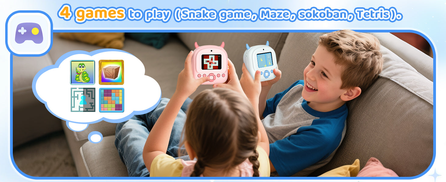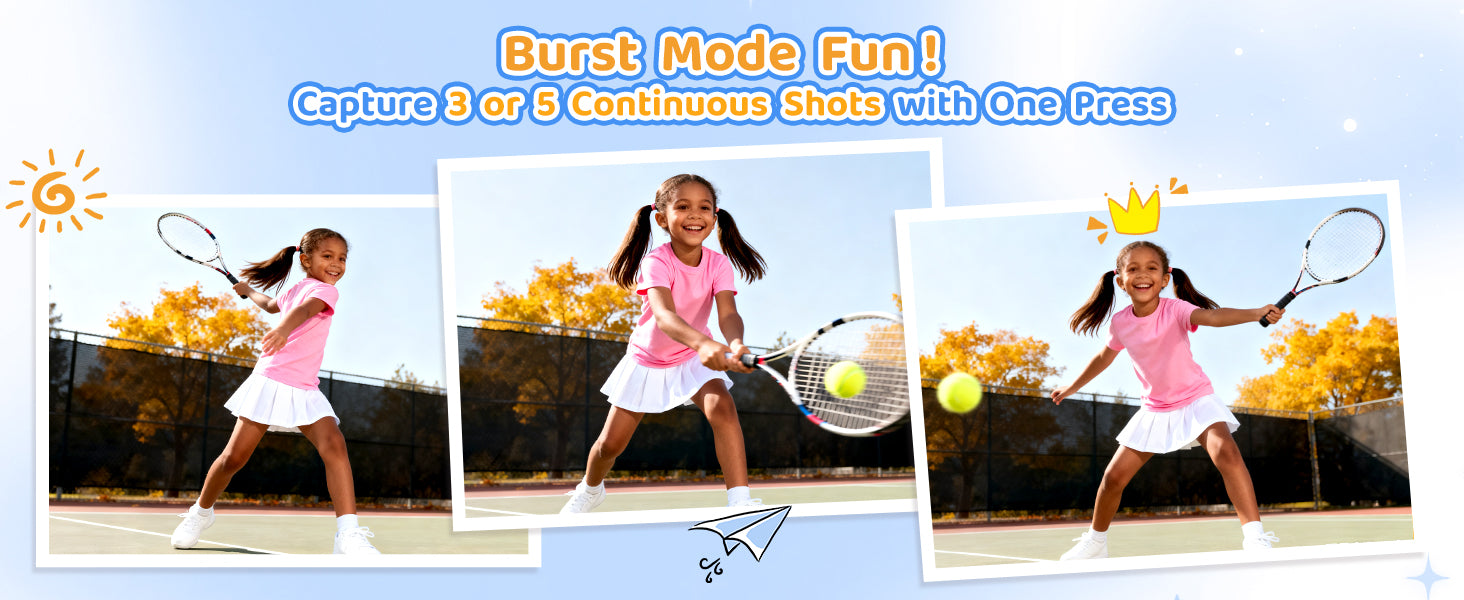 • All-in-One Creative Hub for Kids: More than just a camera, this is a portable creative studio. It features a 2.4-inch large screen for easy framing, 1080P video recording, time-lapse, continuous shooting (3/5-shot burst), built-in games, fun filters & frames, and even an MP3 player. Designed to grow with your child, it satisfies their evolving creative needs and makes for a wonderful companion, capturing happy moments and bringing the whole family together.